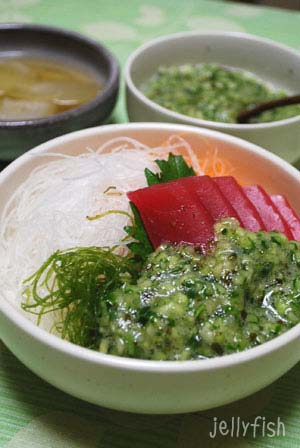 わたしはお刺身はダメなので、ご飯に「山形のだし」をのっけて食べてました。