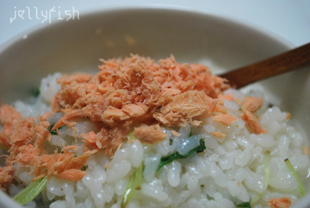 昨日は珍しくお腹が空いていたので、残りご飯でおかゆでもしようかなーと。