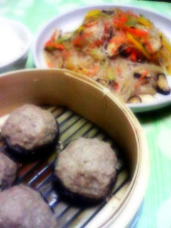 しいたけの肉詰め蒸し・春雨のチャプチェ